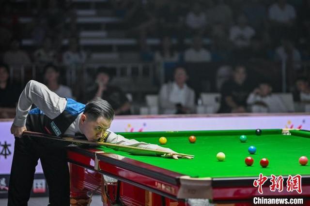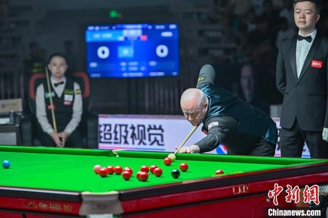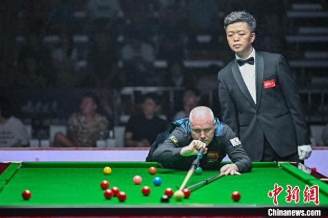 图为老将约翰·希金斯准备击球。中新社记者 刘忠俊 摄