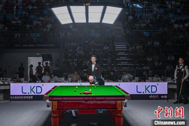 图为约翰·希金斯与肖国栋的比赛现场。中新社记者 刘忠俊 摄
