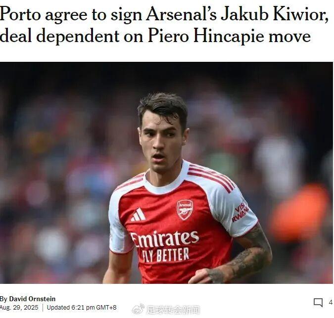 TA记者DO消息,波尔图和阿森纳就基维奥尔的交易达成了协议,这名25岁的后卫和波尔图就个人条款也达成了一致。